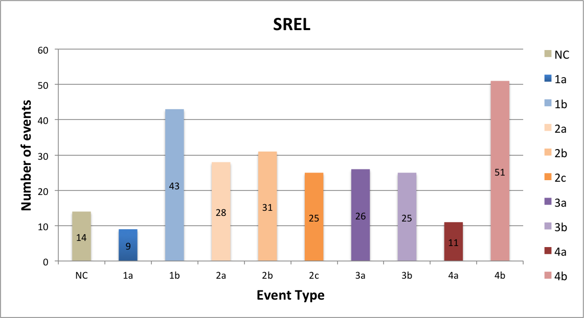 The distribution of event sub-types over the events in the SREL is given in the figure and table below.